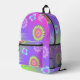 Express yourself with this retro pastel gradient purple, pink and green background colors backpack. Decorated with multi-colored flowers, butterflies and psychedelic shapes pattern.