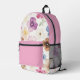 Watercolour Floral cushion in pastel shades featuring, pink, yellow purple and white flowers on a white background backpack.