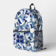 Esta divertida mochila de voleibol presenta un patrón aleatorio de baloncesto de voleibol azul claro, azul oscuro y blanco de tamaño variado, girado de todas formas en un fondo blanco - personalizar con el nombre del atleta y número de camiseta - de katz_d_zynes