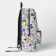 ¡Mucha diversión en una sola impresión! Este patrón es un bosquejo de personalizado blanco y negro con toques coloridos por todas partes. Funcionan piezas como nubes de arco iris, flamencos, donuts, quequitos y helados, íconos de los 80, patinetas, anclas, zapatillas, cactus, bigotes, cámaras y MUCHO MÁS!!! Ideal para un fiesta de los 80, o sólo una tonelada de diversión diaria. Mochila impresa de estilo Personalizado estilo lujoso y colorido del arcoiris 80. Ideal para regresar a la escuela para sus hijos, o para una apreciación del profesor o un regalo de vacaciones.