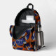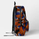Esta fresca mochila de baloncesto presenta un patrón aleatorio de baloncesto de tamaño variado girado de todas formas en un fondo negro - cada una de las pelotas de baloncesto en el patrón tiene dos paneles coloreados - un azul y un gris - personalizar con el nombre y número jersey del atleta - de katz_d_zynes