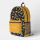 Mochila Impresa Patrón de dinosaurio colorido nombre negro amarill