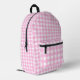 Un patrón clásico de gingham rosa pastel y blanco perfecto para primavera y verano. Se muestra aquí en un personalizado por toda la mochila impresa. Redimensionar el patrón de cada panel a su gusto y añadir un nombre o cualquier texto si lo desea. Es un lindo diseño de campo que siempre tiene estilo. ¡Genial para la escuela, los viajes y más!