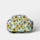Hay un patrón de bonito de girasoles de color amarillo y azul en esta linda bolsa. Las imágenes, frontal y posterior, se colocan sobre un fondo blanco.
