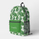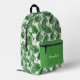 La mochila personalizada de color verde y blanco con motivos de hojas tropicales de vegetación alegre es totalmente personalizable. Las hojas tropicales, grandes y audaces, verdes y blancas, se superponen unas a otras con un fondo blanco y un diseño de azulejos pintados sutil.