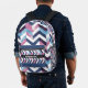 Esta mochila tiene un estilo de mármol de estilo chevi, con tonos blancos, rosas y azules. Se puede personalizar el texto y es ideal para diversos equipos deportivos, grupos sociales o divisiones de empresa.