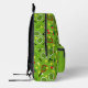 Mochila verde de cal colorida con raquetas de tenis, pelotas de tenis y fresas. El área de bolsillo frontal tiene texto personalizable para que añada su nombre o iniciales