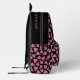 Mochila divertida de la sandía tropical sobre fondo negro. Personalizar con su propio nombre o elección de texto. Elementos coincidentes disponibles. Arte original de artistas que poseen ilustraciones. Use el botón de mensaje que aparece a continuación para obtener ayuda sobre la personalización y las solicitudes especiales. © Zoe Chapman Design