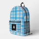 Patrón revestido Gingham Comprobar Mochila Monograma azul claro y blanco . Todo de madera de color escocés brillante con un patrón de verificación de gingham blanco y azul claro. Ideal para viajeros, mochileros, excursionistas, campistas, fanáticos de la aptitud, estudiantes, profesores y amantes de los estampados a cuadros en colores hermosos. Añade tu monograma inicial para un toque personalizado!
