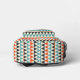 Este patrón presenta un patrón hecho de triángulos verde azulados y naranjas.
