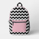 Mochila Impresa Patrón de zigzag negro y blanco, chevron, rosa