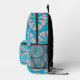 Mochila azul Aqua con diseño de conchas de abdomen. El bonito parqué de relámpago forma un diseño circular y está decorado con un color azul marino. Este paquete con temática marina es perfecto para niños o adultos que aprecian el océano y sus criaturas que habitan en las marismas.