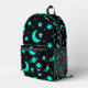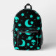Mochila Impresa Patrón extraño turquesa con estrellas y lunas