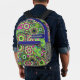 Mochila Impresa Patrón floral retro de moda con bloque de nombres