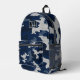 Penn State, navy white camo, lion design, printed backpack, bold camo pattern, college inspired, lion motif, sporty design, rugged backpack, dynamic pattern