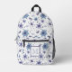 Mochila Floral de monograma Periwinkle con una sola letra monograma inicial.