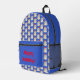 Esta impresionante mochila presenta una imagen de arte digital de un lindo gato siamés Navidad con hermosos ojos azules, garras marrones, orejas y whiskys y sus patas delanteras levantadas en el aire. El gato lleva puesto un collar rojo con copos de nieve blancos y bonitos y una hermosa campana dorada. El gato lleva puesto un cálido gorra rojo de bobble con copos de nieve blancos para mantenerlo caliente durante el frío invernal. Hay texto personalizado para que pueda incluir un mensaje. El mensaje predeterminado dice fiestas felices.