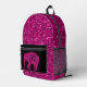 Mochila impresa de un elefante rosa extremadamente caliente Personalizado Monograma. Accesorio de bolsa elefante espumoso. Hermosos elefantes glamorosos rosados calientes con brillantes purpurinas. Puede personalizar color de la mochila. ¡Foto de chispas rosas, no purpurina real!