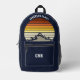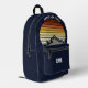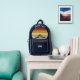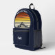 Esta fresca puesta de sol de época naranja sobre montañas rocosas en la naturaleza hace una gran imagen en una bonita mochila azul marino retro para un viaje de senderismo por la montaña o para unas vacaciones de acampada para una familia que adora pasar el tiempo al aire libre y el desierto. Monograma con tu nombre en el bolsillo.