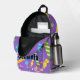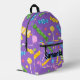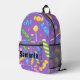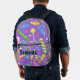Treat your child to a backpack that's as sweet as candy! This vibrant backpack features an all-over print of colorful lollipops, wrapped candies, and assorted sweets on a playful lilac background. The front pocket is personalized with any name (like shown), creating a unique accessory perfect for school, outings, or playdates.
