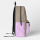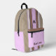 This design features a stylish, personalized monogram letter (R) accented with delicate floral details and a custom name (Raelynn). The mock-up showcases the design on a preppy, striped backpack in a soft pink and brown color palette. This product is special because the letter and name are fully customizable, making it an ideal unique gift for students, travelers, or anyone seeking personalized accessories.