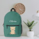 Personalized Kids' Backpack with Bear and Name - Teal Green