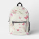 Mochila Impresa Pink Flowers, Butterflies, Pale Pink Background