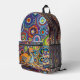pintura retro de círculos y olas con un bonito pájaro nadando en este retro cuadro hippie.