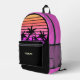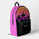 Mochila Guay rosa caliente y palmera negra para un viaje de chicas a una isla tropical. Delante de una puesta de sol en la playa rosa de bonito hay bonitas palmeras. Mochila perfecta para personalizado en monograma para su viaje de crucero o verano al mar.