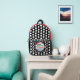 Divertidos dichos motivacionales en la tipografía colorida Be Happy, Love, Smile, Do Your Best, etc. contra un fondo blanco sólido dentro del círculo rojo delineado y cuadrado. Fondo negro clásico con un patrón geométrico de puntos de polka blanco. Sólidos lados negros inferiores e inferiores. Área superior de color rojo sólido. Diseño original © TamiraZDesigns.