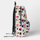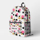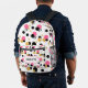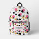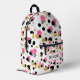 Esta elegante mochila cuenta con puntos de polka abstractos retro en rosa, negro, dorado y rayas y personalizado con tu nombre.