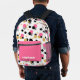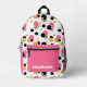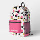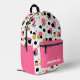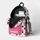 Esta elegante mochila retro cuenta con puntos abstractos de polka de color rosa, negro, dorado y rayas. Añade tu nombre a personalizado.
