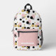 Esta elegante mochila retro cuenta con un patrón de puntos de polka en rayas rosa, negro, dorado y rosa. Añade tu nombre para personalizar.