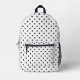 Haga una declaración con esta mochila impresa en personalizable de puntos de polka negro de moda. Diseñada para el estilo y la funcionalidad, esta mochila es perfecta para la escuela, el trabajo, los viajes o el uso diario. Personalízalo con tu nombre, iniciales o texto personalizado para crear un accesorio único que refleje tu personalidad. Durable, liviano y moderno — es imprescindible para cualquiera que ame la moda moderna con un toque lúdico.