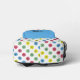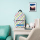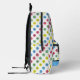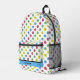 Personalice esta mochila impresa que tiene un diseño de puntos de polka retro con su nombre. El patrón tiene 4 colores de polka con símbolos atómicos retro y una textura de impresión vintage. O quitar el bloqueo de color y el nombre para el pedido masivo de una pequeña tienda.