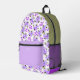 Mochila Impresa Purple Floral Garden Nombre personalizado inicial