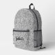El purpurina de luz gris plateado deslumbra Nombre personalizado Mochila impresa. Personalice la bolsa accesoria con su nombre personalizado. Guay, diversión, elegante y única idea de regalo falso para ella. Los hermosos purpurinas brillantes plateados y glamorosos brillan. ¡Foto de destellos de plata, no purpurina real!