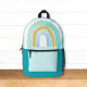 Este bonito diseño de mochila para niños presenta el ilustracion de un arco iris purpurina dorado falso, azul y agua. En la parte superior puede personalizar con el nombre de su hijo. Si prefiere no incluir un nombre, simplemente elimine ese texto. ¡Es un diseño moderno y dulce para los niños!