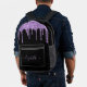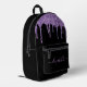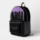 Moda personalizada, mochila negra elegante y ondulada con goteo purpurina de imitación violeta. Personalice su nombre en un elegante y moderno guión de color púrpura claro con chispas. Puede ajustar el tamaño del tipo de letra del guión en la herramienta de diseño para nombres más cortos o más largos.