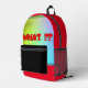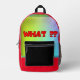 Tipo de bolso: Mochila de corte de impresión Mochila ligera y duradera, nuestra mochila de impresión completa personalizado es justo lo que necesita. El espacioso interior es ideal para viajes, escuelas, gimnasios o cualquier necesidad de almacenamiento móvil. ¡Trae tus cosas con estilo! Características Correas de hombro acolchadas ajustables, dos cámaras en el interior para el almacenamiento de portátiles, bolsillos laterales de malla y una etiqueta de identificación. Dimensiones: 17"x12.5"x5" Hecho de duradero Polvo poliéster Impresión sobre todo el personalizado a todo color Diseño de dos cámaras con bolsa de almacenamiento para portátiles Bolsillo lateral de malla (¡estupendo para botellas de agua!) Etiqueta de identificación Este producto se recomienda para edades de 4 años+ Limpieza y secado sólo