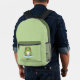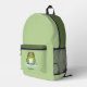 ¡Una mochila verde con un ilustracion de una rana linda en su estanque y el texto de personalizable debajo! ¡Perfecto para un niño o un amigo que ama los animales!