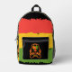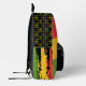 Puede personalizar este diseño de mochila Rasta/Reggae para que se ajuste a su estilo. Presenta un gráfico escudo rasta en el bolsillo delantero y rayas rastas rojas rugosas y rojas verdes y símbolos de paz rastafari en la parte superior de este diseño para una apariencia única. ¡El regalo perfecto para una excursión de invierno al Caribe!