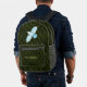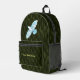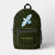 Una silueta blanca de un cuervo (Corvus corax) en vuelo superpuesta sobre un fondo fractal de tono verde que se parece mucho a un bosque de coníferas. Añade tu propio texto.