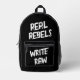 Real Rebels Write Raw Backpack — cool rebel statement in black and white for daring dudes, cool gals, and chaotic creatives who turn raw handwriting into signature style!