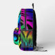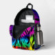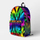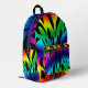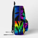Diseño abstracto salvaje en tonos profundos de arcoiris y más - rojos, azules, amarillos, verdes, rosados, toques de morado, todo acentuado con negro. ¡La persona que lleva esta mochila debería destacarse en una multitud!