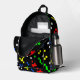 Classic video game fans will love this fun, retro style 8-bit graphics pattern in bright colors on a custom backpack. The simple, square shapes stand out on a black background. You can adjust the size of the pattern on each panel or delete it for a solid color if you prefer. It's a fun design for any gamer! Great for school, travel, and more!