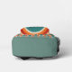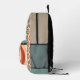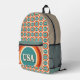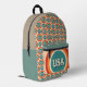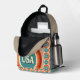 This backpack design is special for its nostalgic, retro-inspired aesthetic. It features a repeating pattern of vintage concentric circles in a muted palette of tan, teal, and orange, each containing the word "USA". The design captures a classic 70s/80s Pop Art vibe, making it a trendy accessory for those who appreciate Americana and vintage graphics. The front pocket highlights the bold "USA" logo, tying the design together.
