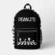 Esta obra de arte de Peanuts incluye a Snoopy tomando una siesta creada en un estilo de diseño de música rock.