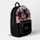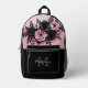 Este exclusivo diseño moderno y lujoso de mochila para sus rosas 3D rosados y negros y su nombre y monograma personalizados.