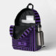 Mochila impresa de nombre personal con rayas de color púrpura y negro